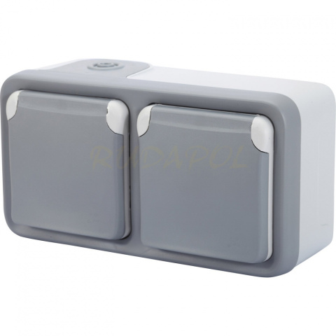 GNIAZDO PODWÓJNE 2x2P+Z Z PRZESŁONĄ STYKÓW SZARE 16A-250V~ kompletne